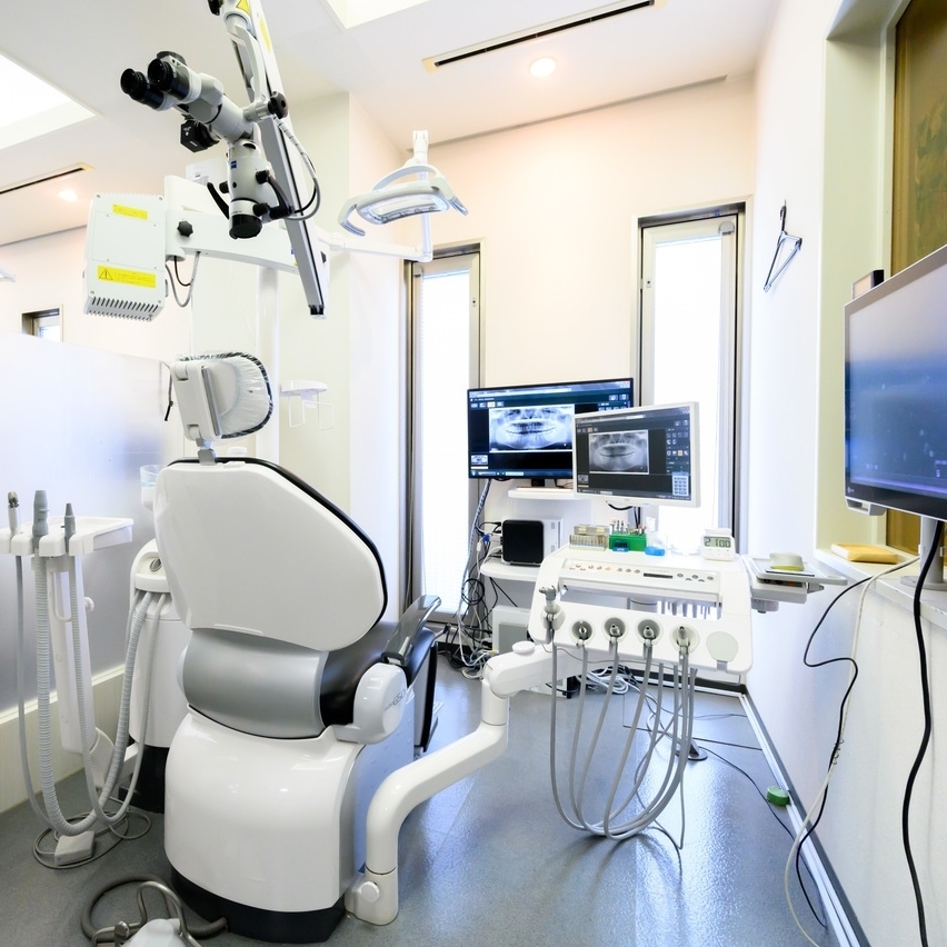 院内感染防止対策として、私共が特にこだわっているのが「水」です。院内で使用する水は、毎年検査を実施して細菌ゼロを徹底しています。さらに、診療台の中を殺菌水が循環する「ポセイドン」という設備も導入しており、水中の細菌を殺菌し、治療中に使う水を清潔に保つことが可能です。